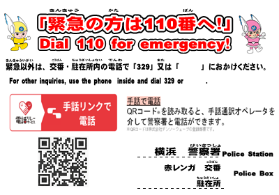 事件、事故の発生時に、文字や画像で110番通報できる「110番アプリシステム・FAX110番」についてはこちらをご確認ください。