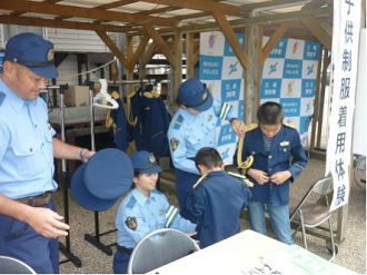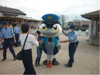令和7年10月4日土曜日、三崎町5丁目三崎フィッシャリーナ・ウォーフうらりにおいて海業フェスタ開催時に、広報活動を実施しました。 三崎署防犯マスコット「うっぺ」のふれあい活動 子供制服着用体験 パトカー乗車体験