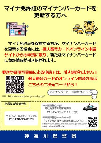 再びマイナ免許証等として利用するためには運転免許センター又は警察署(横浜水上警察署を除く。)において再度免許情報等を記録する必要があります。